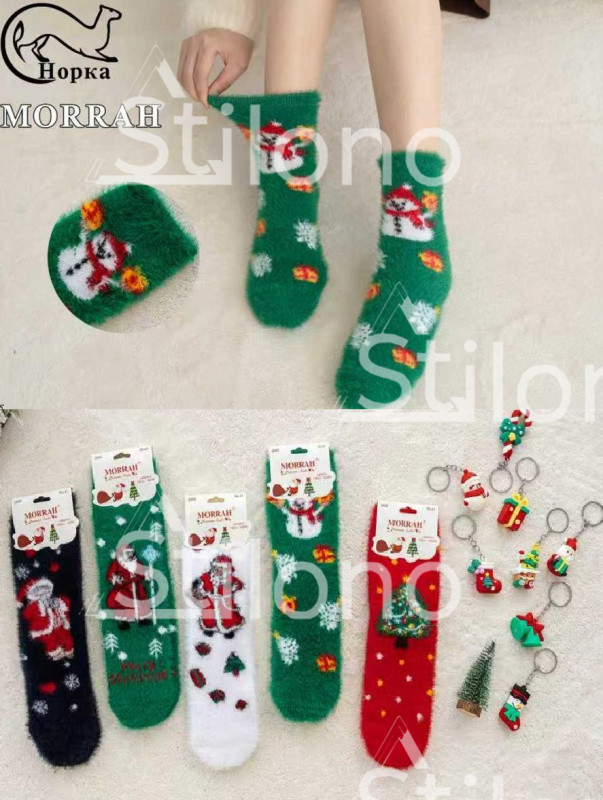 Носки женские с новогодним принтом теплые из шерсти норки